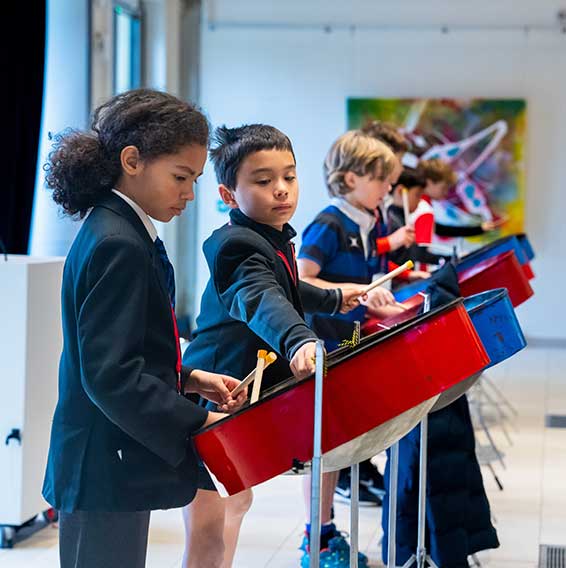 Music plays a vital role in life at the Junior School. Every week, all pupils enjoy a dedicated curriculum music lesson and a year group singing session, with an additional instrumental scheme lesson for pupils in Years 3 and 4. A wide range of musical opportunities is available including large ensembles for instrumentalists, choirs, and chamber music groups such as percussion ensemble, guitar group and string quartets.